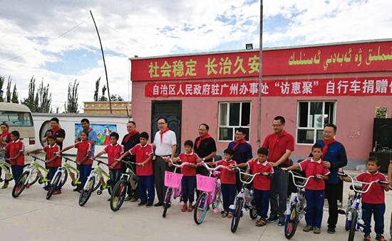 据出席本次捐赠活动的自治区人民政府办公厅驻广州办事处主任贺建军介绍,由于路途遥远,当地的许多孩子们都渴望有辆自行车上下学,这些自行车就是广州办事处给他们带来的“连心”车,同时也传达了leyu.com科技对新疆农村学子的殷切关怀,希望孩子们在学习成长的道路上骑得更远,飞得更高,坚定对未来美好生活的信心与决心。现场有些孩子领到自行车后就迫不及待地试骑起来,在小小的操场上响起了孩子们阵阵欢快的笑声。